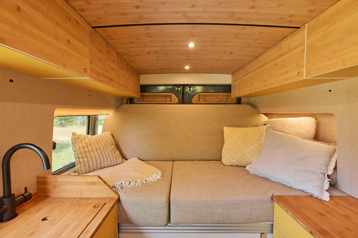 Der Ausbau basiert auf dem bewährten Kompanja Konzept. Der schlüsselfertige Basiscamper beinhaltet alles, was du zum Campen brauchst. Darauf aufbauend kannst du sowohl die Farben und Materialien als auch vielfältige Möbel- und Technikoptionen nach deinen Wünschen auswählen. All diese Optionen kannst du auch jederzeit nachrüsten lassen. Du kannst also ganz in Ruhe mit der Basis starten, erstmal deine eigenen Campingerfahrungen sammeln und dann entscheiden, was du wirklich brauchst. An unseren eigenen Erfahrungen lassen wir dich natürlich auch gerne teilhaben - sowohl bei der Konzeption unserer Fahrzeuge als auch bei gemeinsamer Konfiguration deines Traumcampers.